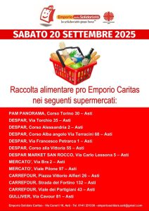 Sabato 20 Settembre 2025 presso i supermercati indicati in locandina