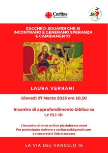 ⇒Giovedì 27 Marzo 2025 ore 20,30 on line: ZACCHEO: SGUARDI CHE SI INCONTRANO E GENERANO SPERANZA E CAMBIAMENTO (Lc 19, 1-60). Relazione di Laura Verrani