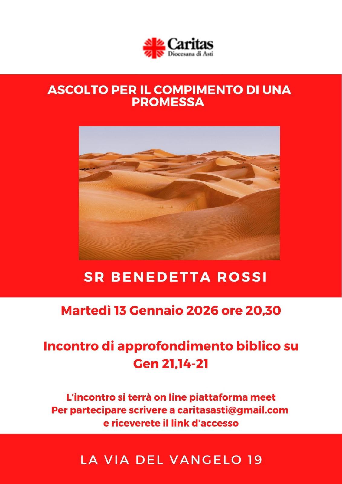 ⇒Martedì 13 Gennaio 2026 ore 20,30 on line: ASCOLTO PER IL COMPIMENTO DI UNA PROMESSA (Gen 21,14-21). Relazione di Sr. Benedetta Rossi