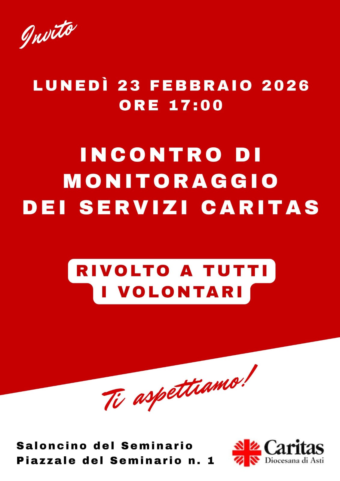 Incontro ricolto a tutti i volontari presso il saloncino del Seminario, Piazza del Seminario,1